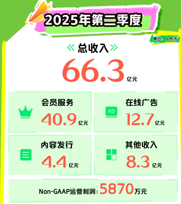 具体到营收层面,2025年第二季度,爱奇艺总收入66.3亿元,同比减少了10%,会员服务、在线广告、内容发行三大业务营收与去年同期相比均出现不同程度的下降。